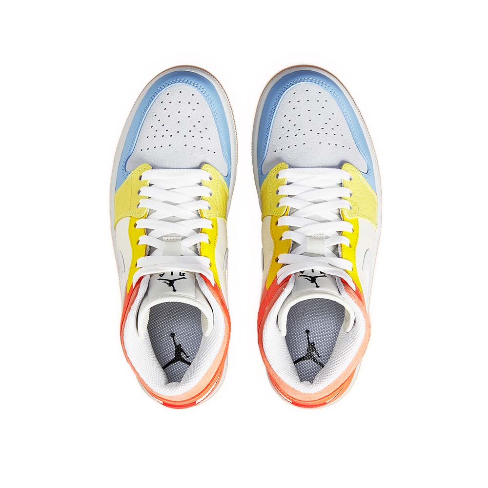The upcoming Air Jordan 1 Mid “To My First Coach”, marked by its poignant greeting on the hangtag and a warming mix of pastels, is adding a third member to its family. Already previewed was the Air Jordan 1 Low “To My First Coach” and the Air Jordan 1 Zoom CMFT, each with the aforementioned add-on and the soft blue/yellow/crimson mix. Now, you can welcome the ubiquitous Air Jordan 1 Mid with the same execution. Aside from the attractive colorway, Jumpman blends a mix of suede, leathers, and a textured forefoot andd Swoosh – something of a blend between the classic elephant print and a stately marbling. A light mesh lining, matching tongue, and outsole in white achieve that made-for-summer look.