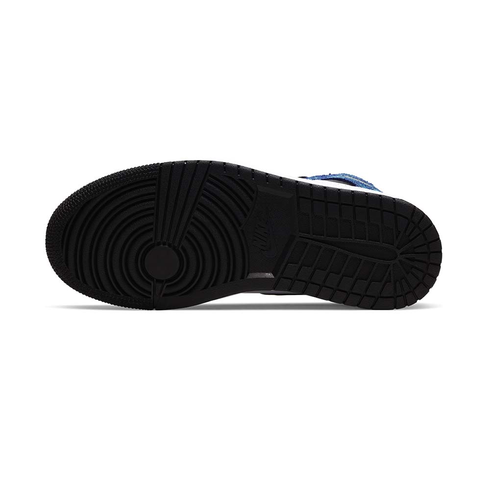The Women’s Air Jordan 1 High “Tie-Dye” is the women’s sizing of the summer-ready design of Michael Jordan’s first signature shoe. Released in Summer 2020, this lively colorway displays a tropical aesthetic with blue and green tie-dye leather overlays on the forefoot, collar, and heel. Black leather appears on the perforated toe box and white leather covers the mid-panel. Additional design elements include black leather Swooshes on each side, a black Wings logo on the collar, and a black nylon tongue. A white midsole and black outsole finish off the look. Release date: June 26, 2020.