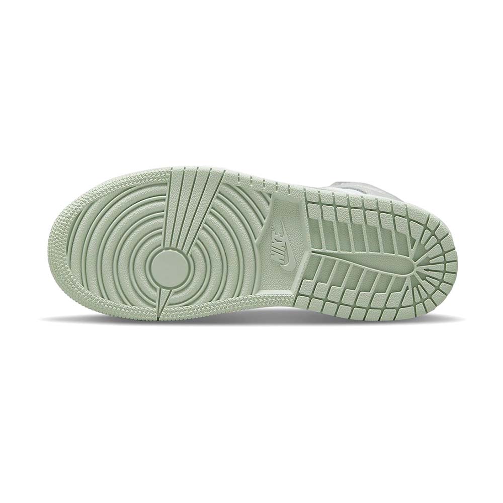 The women’s Air Jordan 1 Retro High OG ‘Seafoam’ delivers a subtle two-tone colorway of the 1985 sneaker that started it all. The all-leather upper features a crisp white base with contrasting overlays in a soft green finish. The pastel hue is repeated on the sneaker’s branding elements, which include the signature Swoosh and Nike Air tongue tag. Contrasting color arrives via Healing Orange trim on the flat woven laces. The high-top is anchored by a durable rubber cupsole with encapsulated Air sole cushioning in the heel.